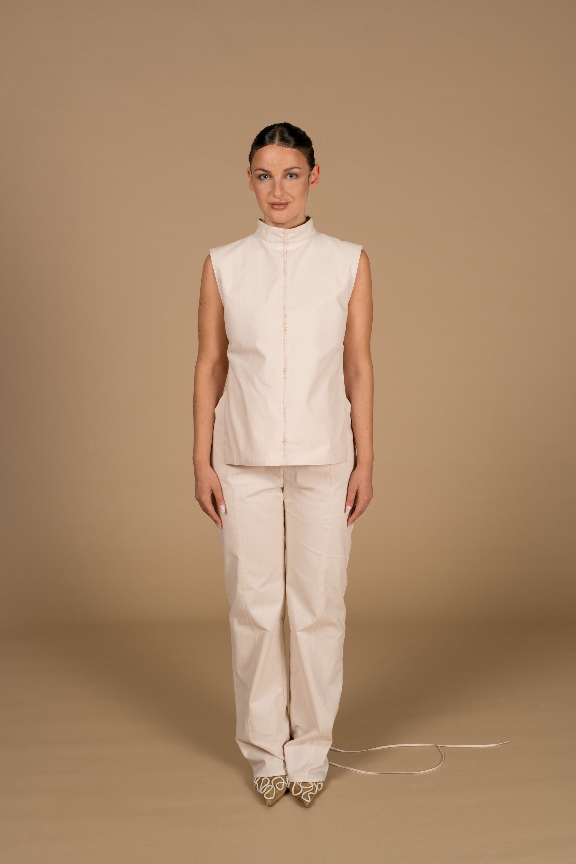 this high-end cotton trouser is thoroughly handcrafted, tailored with an exclusive bespoke pattern and its fashioning is of high quality.