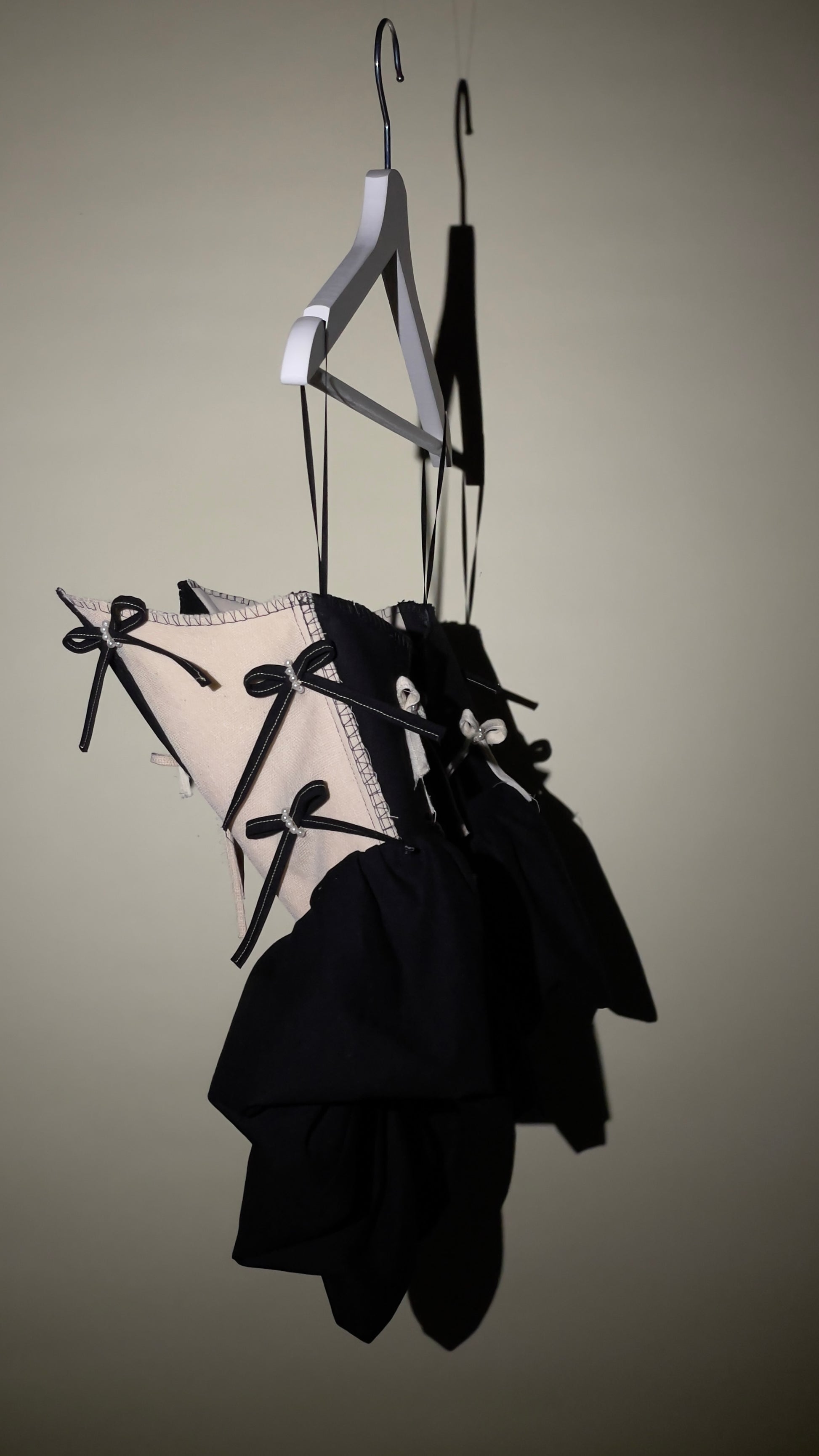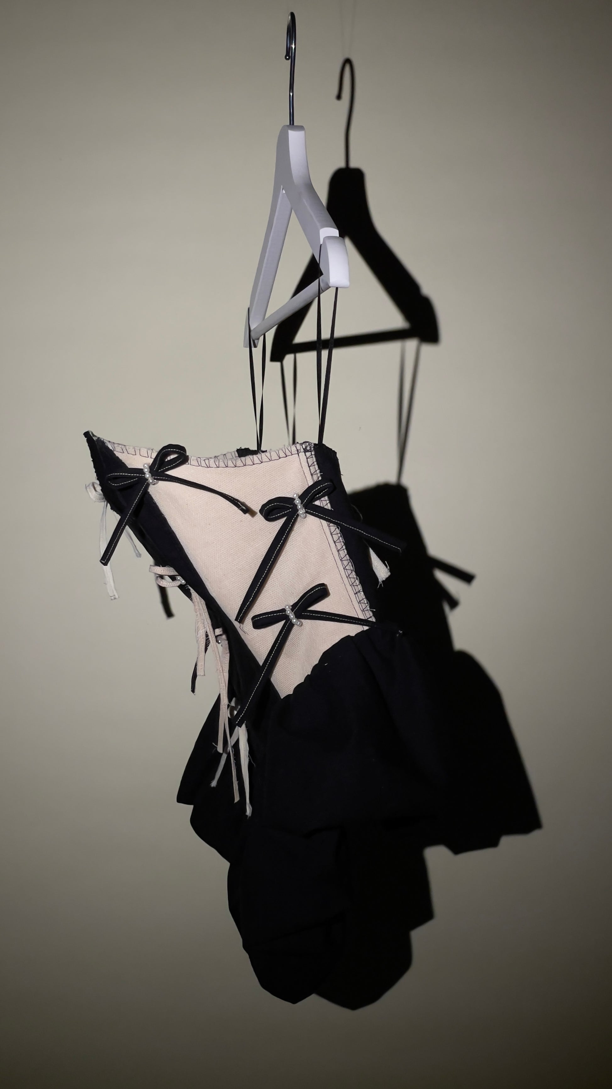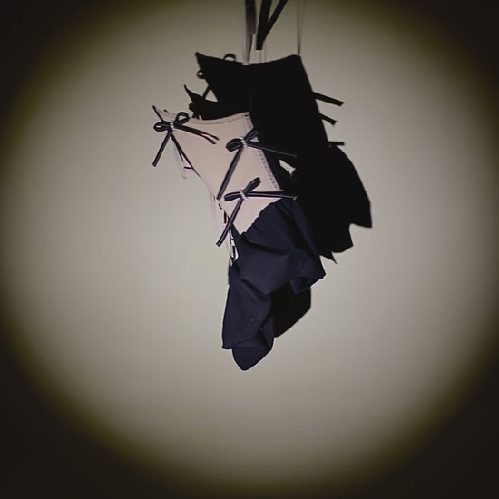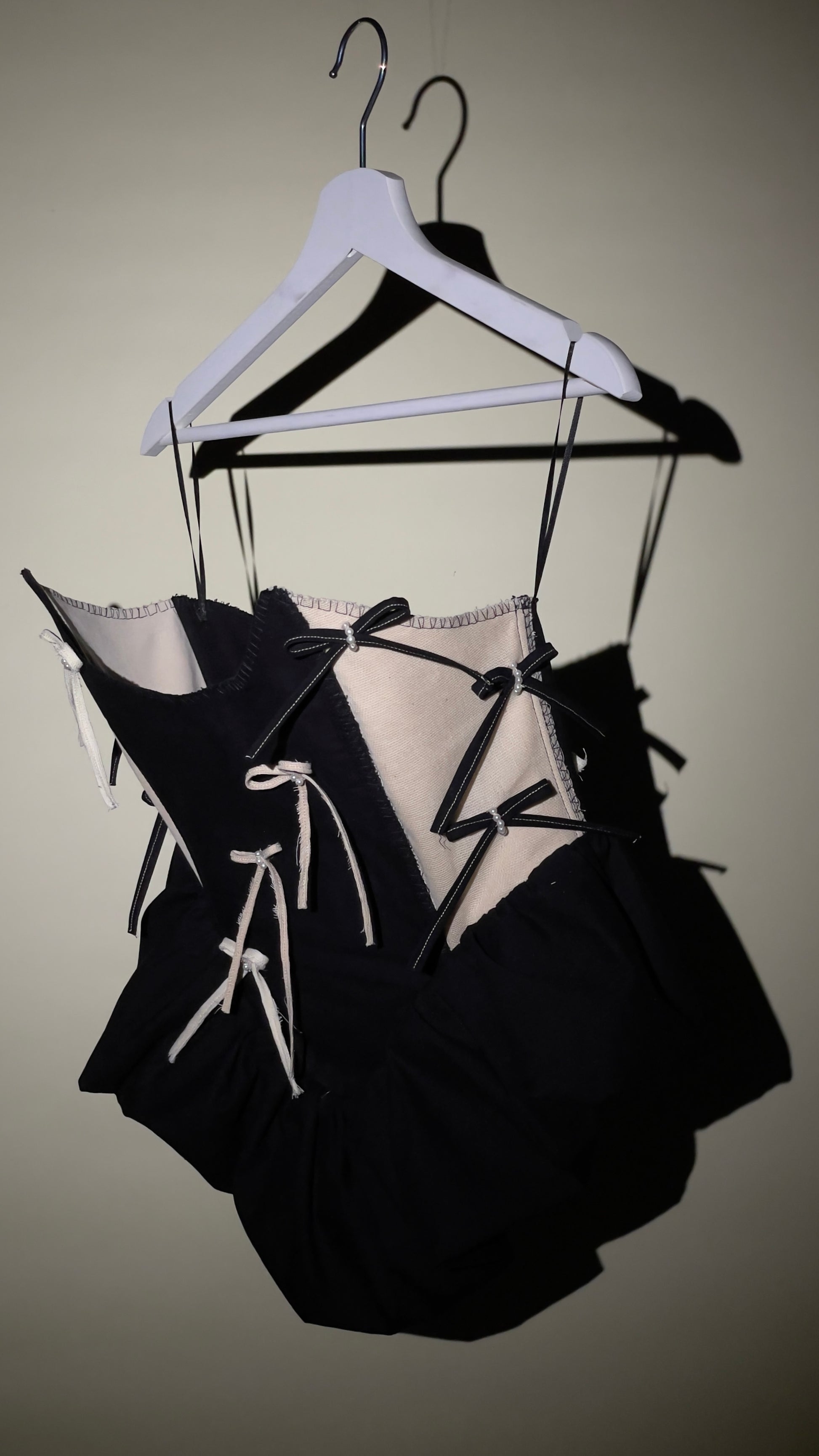 this high-end cotton corsage is thoroughly handcrafted and tailored with a beautiful pointed corsage pattern. it´s voluminous peplum detail gently lays on your hips. the ribbons are made of leftover fabrics and embellished by hand.